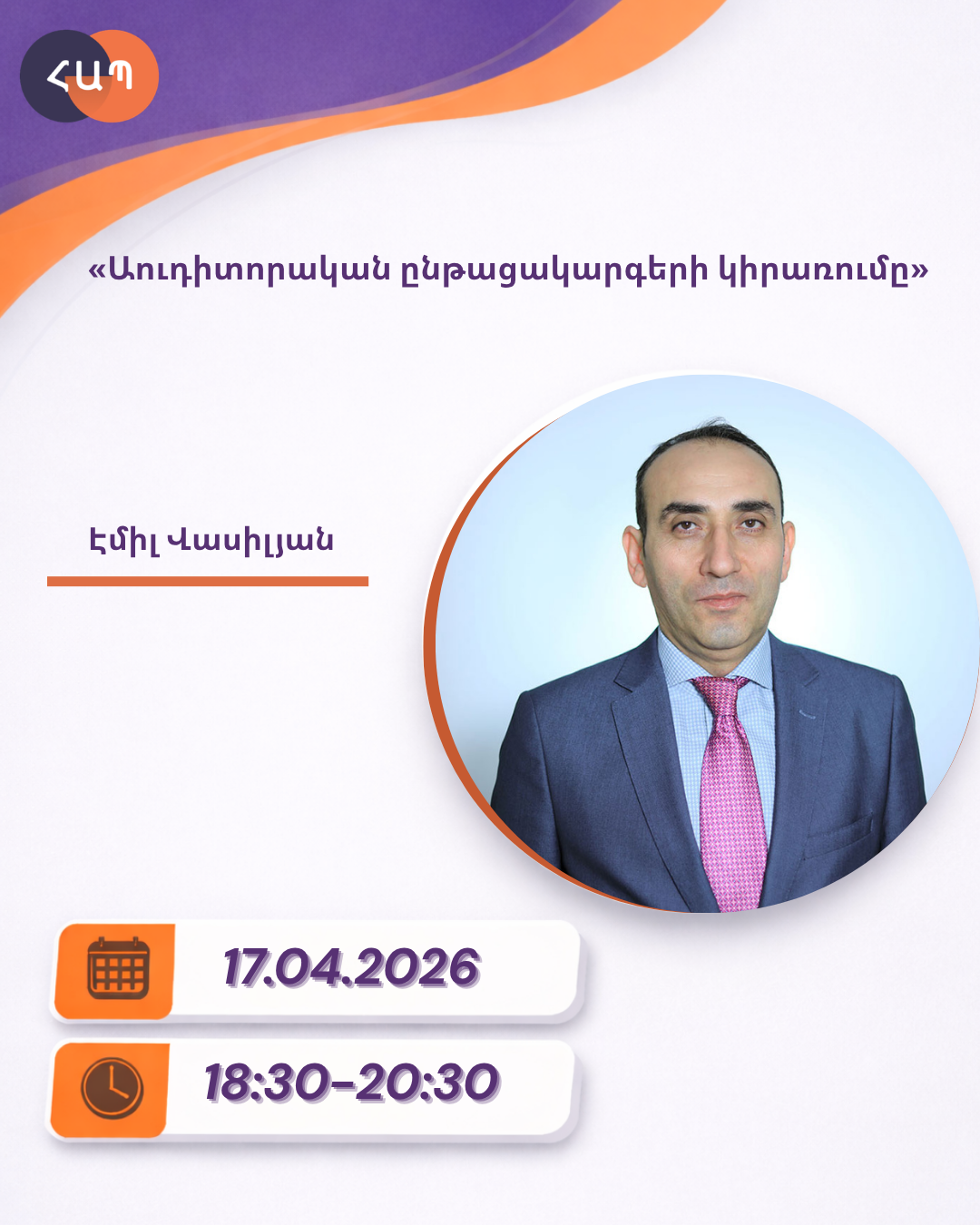 Դասընթացը տեղի կունենա 2026 թվականի ապրիլի 17-ին ժամը 18:30-ից մինչև 20:30, հեռավար: